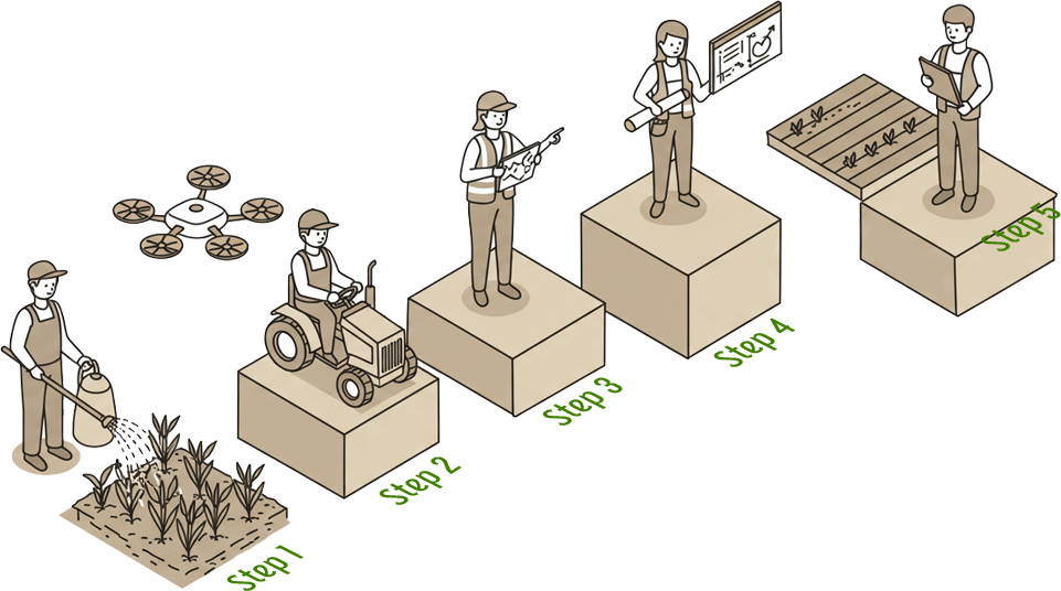 - 作業を“任される”ように。1枚の田んぼを担当したり、機械操作も任せられるドローン操作、トラクター・コンバインのメインオペにも挑戦!